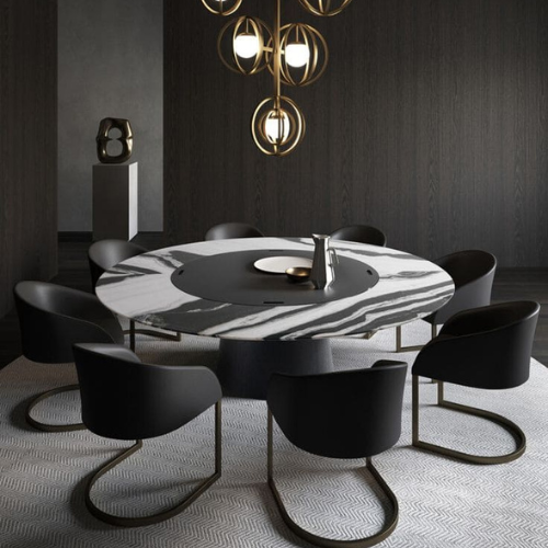 Elevate your dining space with the Cirque du Marble Dining Ensemble, blending avant-garde design with timeless elegance. Its modern minimalist aesthetic and luxurious finish make it a true showstopper.