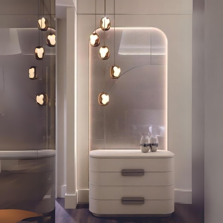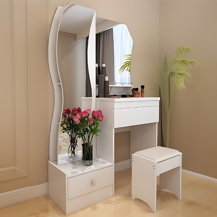 Add elegance to your bedroom with the Serene Wave Dressing Table, exclusively at Teak House. Featuring a stylish wavy mirror and a crisp white finish, it blends modern charm with serenity. With a spacious drawer and smart storage, it keeps your essentials beautifully organized.