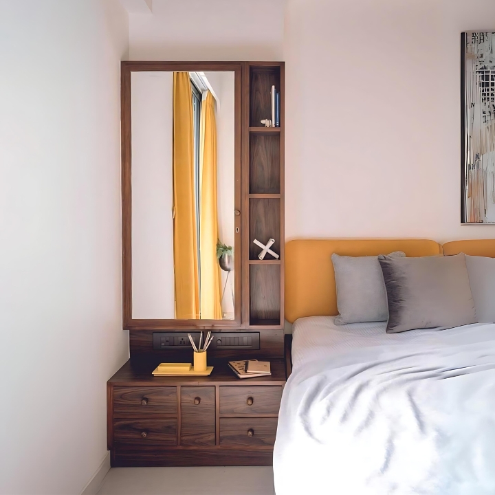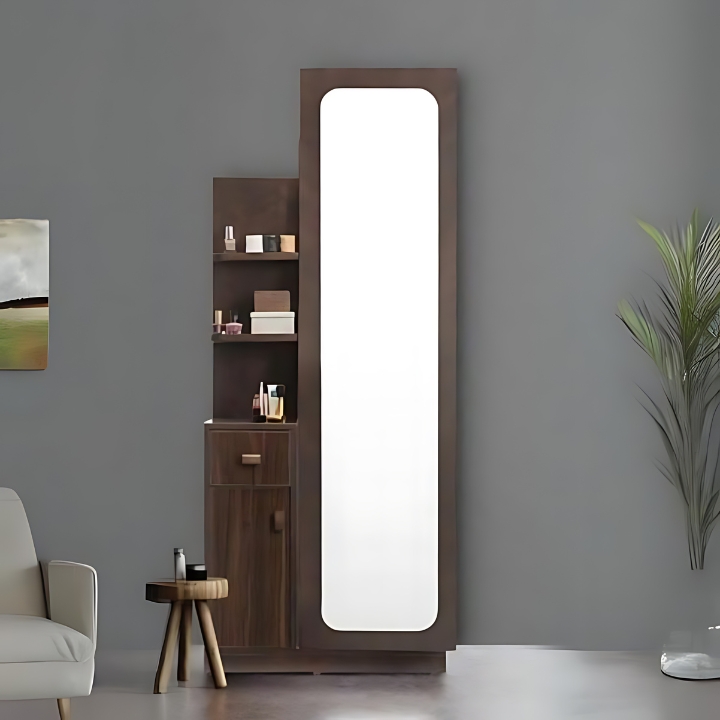 Exclusively at Teak House, the Urban Chic Dressing Table blends style with practicality. Featuring a full-length mirror, open shelving, and a spacious cabinet, it keeps your essentials organized. Its dark wood finish adds a sleek, modern elegance to any bedroom.