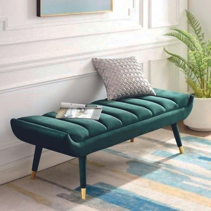 Verdant Velvet Daybed – Upholstered in rich emerald velvet with elegant tufting and gold-tipped legs, this sleek daybed blends modern flair with timeless sophistication.