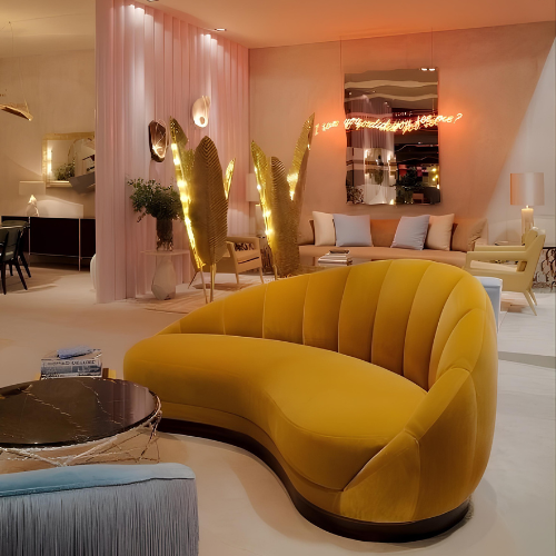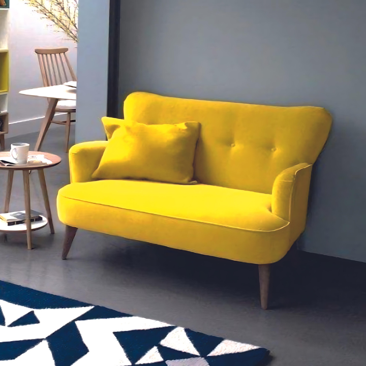 Sunshine Pop Loveseat – Add a burst of energy to your home with bold yellow upholstery, rounded arms, and a tufted back. A vibrant statement piece that blends modern design with everyday comfort.